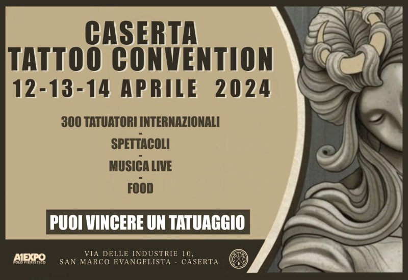 Per tutta la durata dell’evento ci accompagneranno i DJ set, spettacoli burlesque e di magia e musica live.” Insomma, un evento da non perdere che inizierà venerdì 12 e si concluderà domenica 14 aprile. Per visionare il programma completo si invita a visitare il sito: www.casertatattooconvention.it