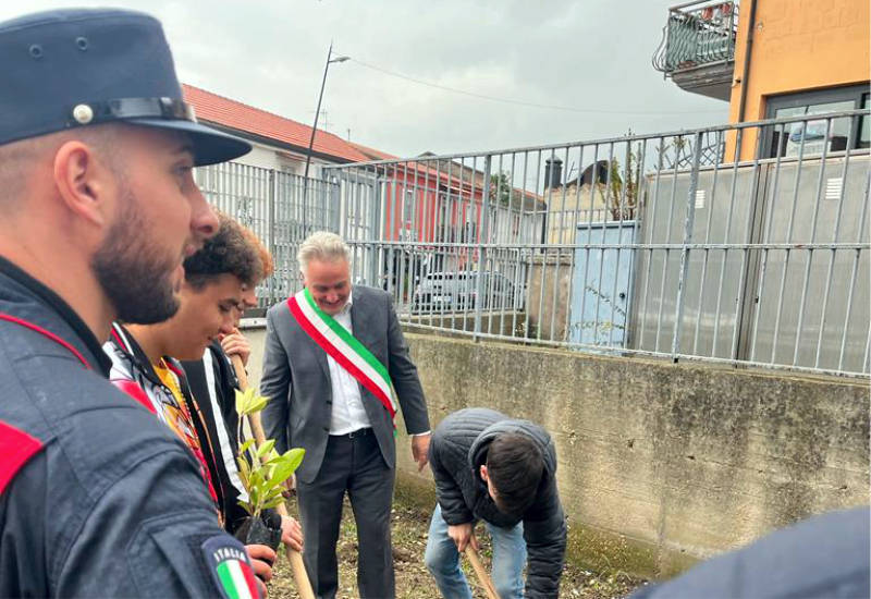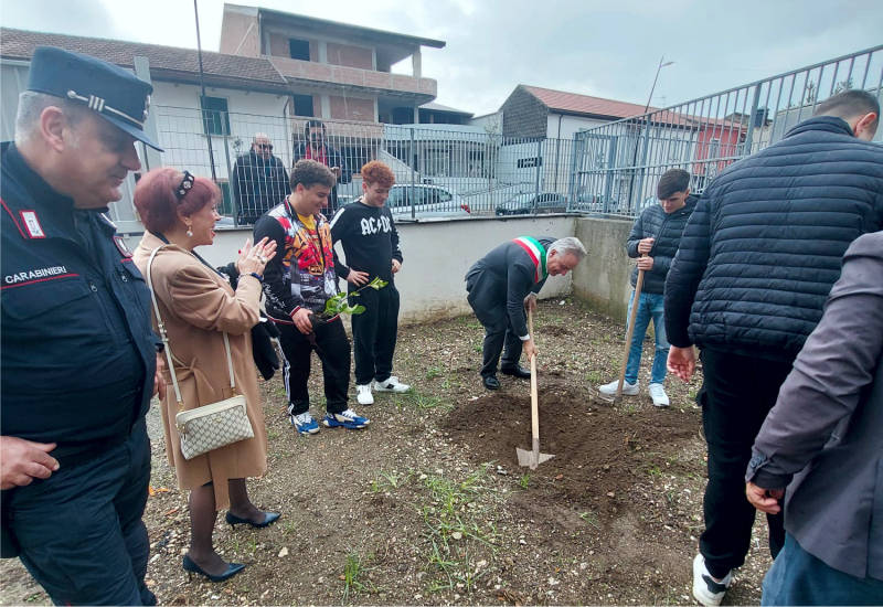 La giornata si è composta di varie importanti tappe: la prima fase dell’iniziativa ha visto la presentazione del progetto “Un albero per il futuro” che, grazie al reparto Carabinieri Biodiversità di Castel Volturno, ha permesso la piantumazione di tre alberi: una ginestra dei carbonai, un pino mugo e un laurus nobilis, piantati nel cortile della scuola.